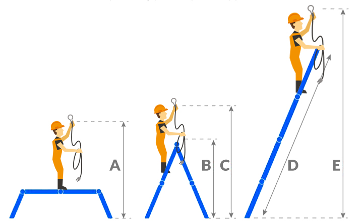 - E – wysokość robocza* – o 5,65 m (pozycja – drabina przystawna)