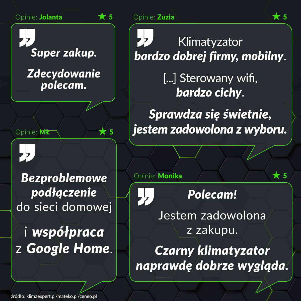 Funkcja Smart – pozwala kontrolować parametry powietrza. Czujnik notuje temperaturę oraz wilgotność. Automatycznie dostosowuje tryb pracy klimatyzatora do panujących warunków.