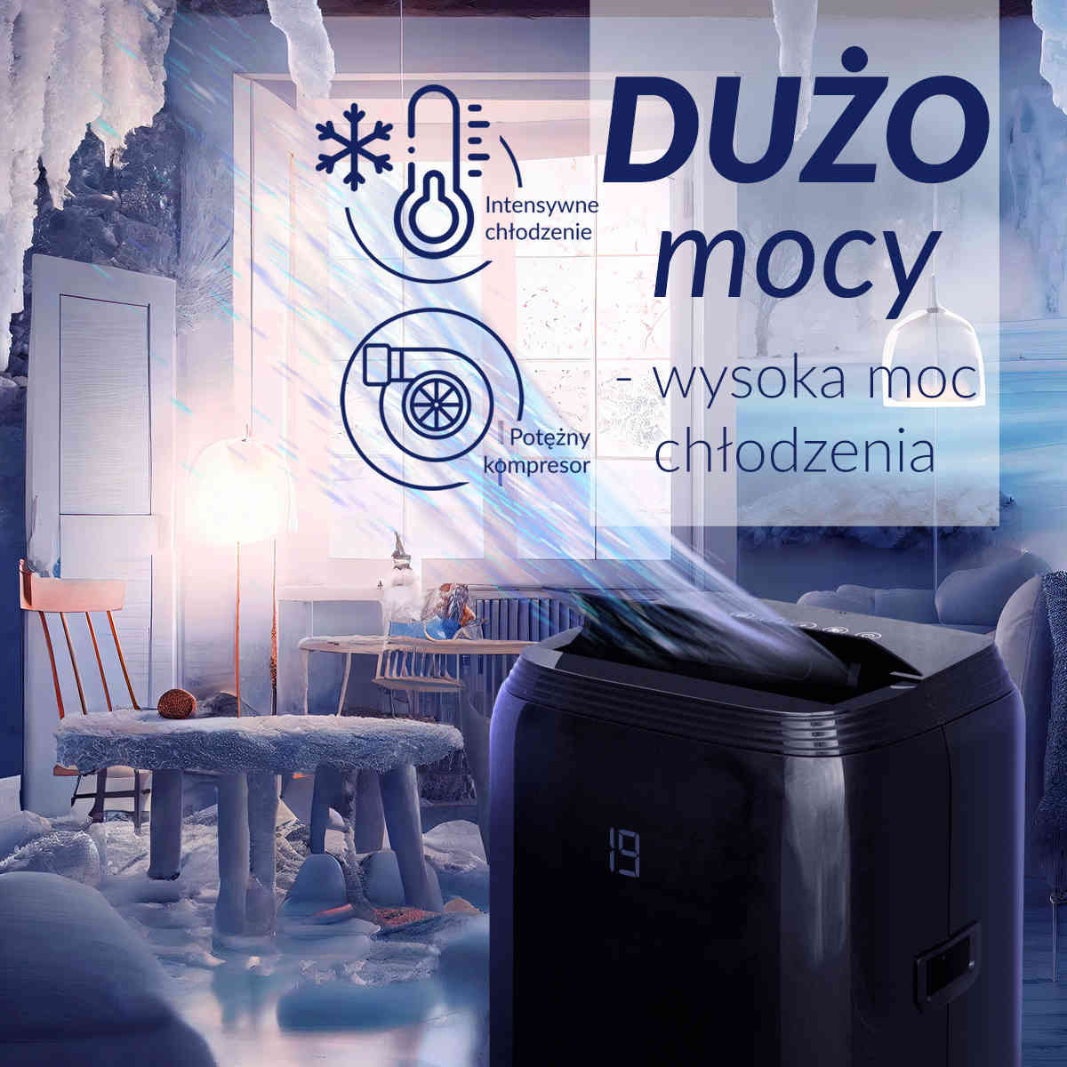 Klimatyzator o mocy 3,2 kW natychmiast zredukuje temperatury w pomieszczeniach do 30 m2.