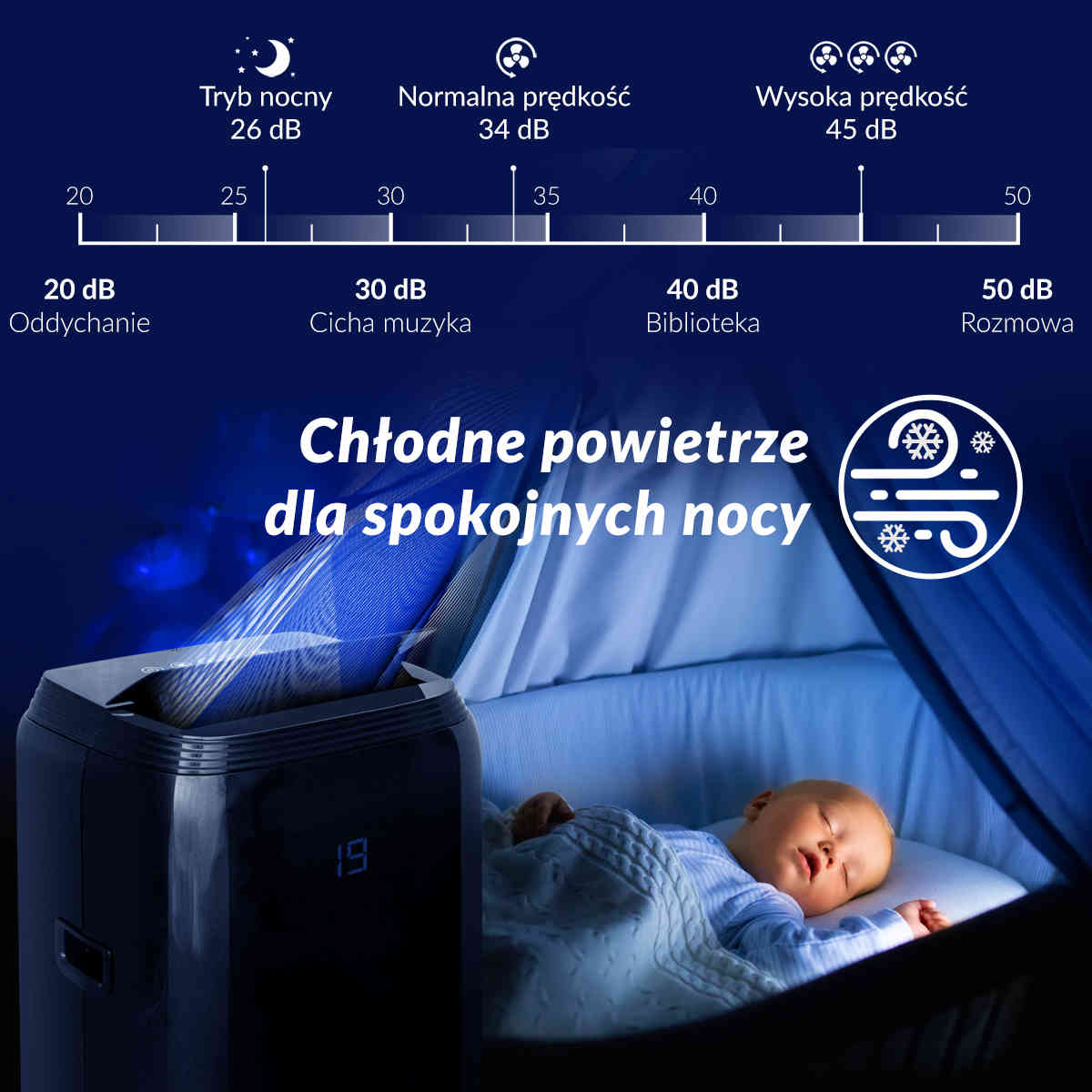 - przycisk SLEEP MODE – tryb nocny, utrzymywanie optymalnej temperatury z zachowaniem minimalnego poziomu hałasu