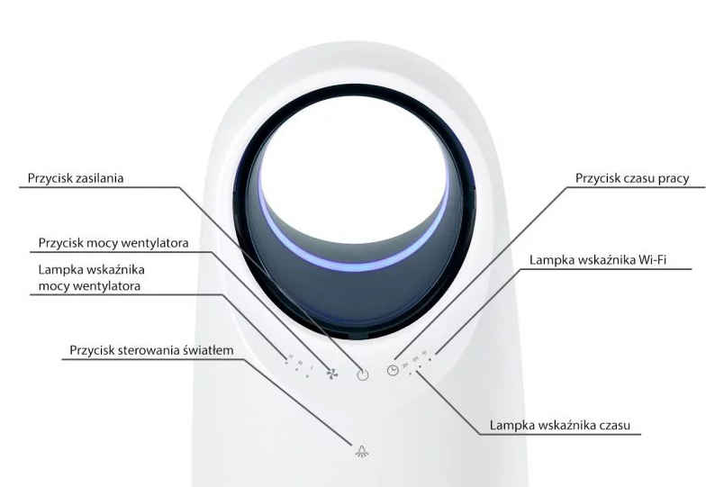 Lavender AiRing posiada 3 prędkości wentylatora, regulację natężenia światła, funkcję timera i sterowanie za pomocą aplikacji. Pozwala to na dopasowanie oczyszczacza do własnych preferencji.