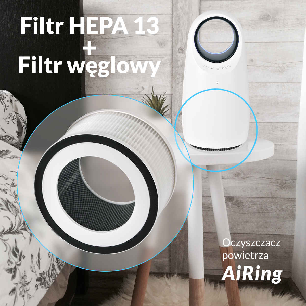 Filtr HEPA usuwa smog, roztocza kurzu, pyłki roślin, strzępki grzybów, bakterie i wirusy.