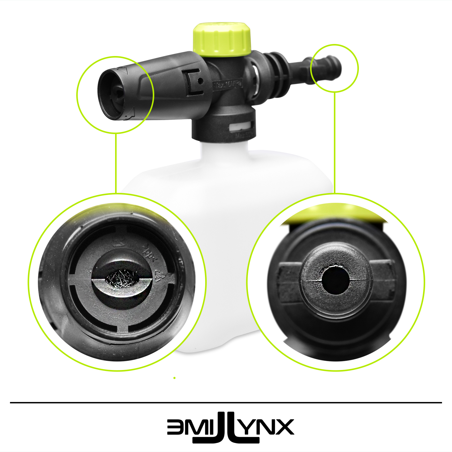 Profesjonalna dysza do piany polskiej firmy Lime Lynx. Pianownica tworzy gęstą, puszystą pianę, która przez długi czas utrzymuje się na powierzchni, zmiękczając trudne do usunięcia zabrudzenia.
