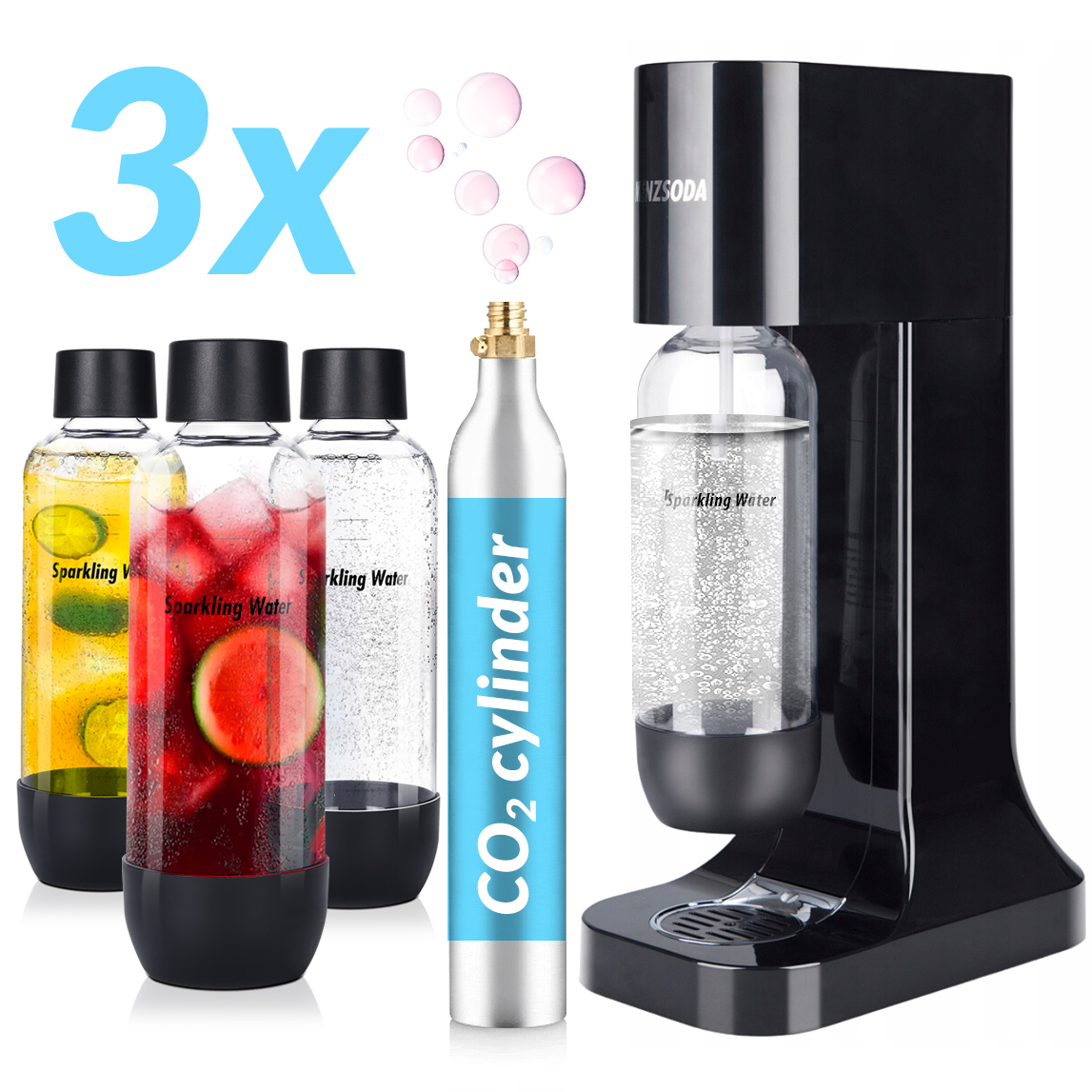 ✅3 butelki w zestawie: Ten zestaw zawiera trzy butelki, co daje Ci większą elastyczność i wygodę w przygotowywaniu napojów gazowanych. Masz większy zapas butelek, co oznacza, że nie musisz tak często dokonywać zakupów.